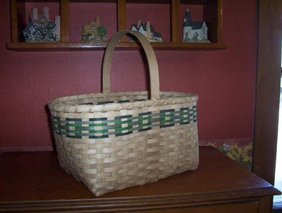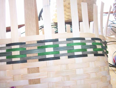 ![]() Soak several pieces of colored reed of your choice. Pull colored reed through a piece of papertowel to remove excess dye Weave in 2 inches height of colored reed |